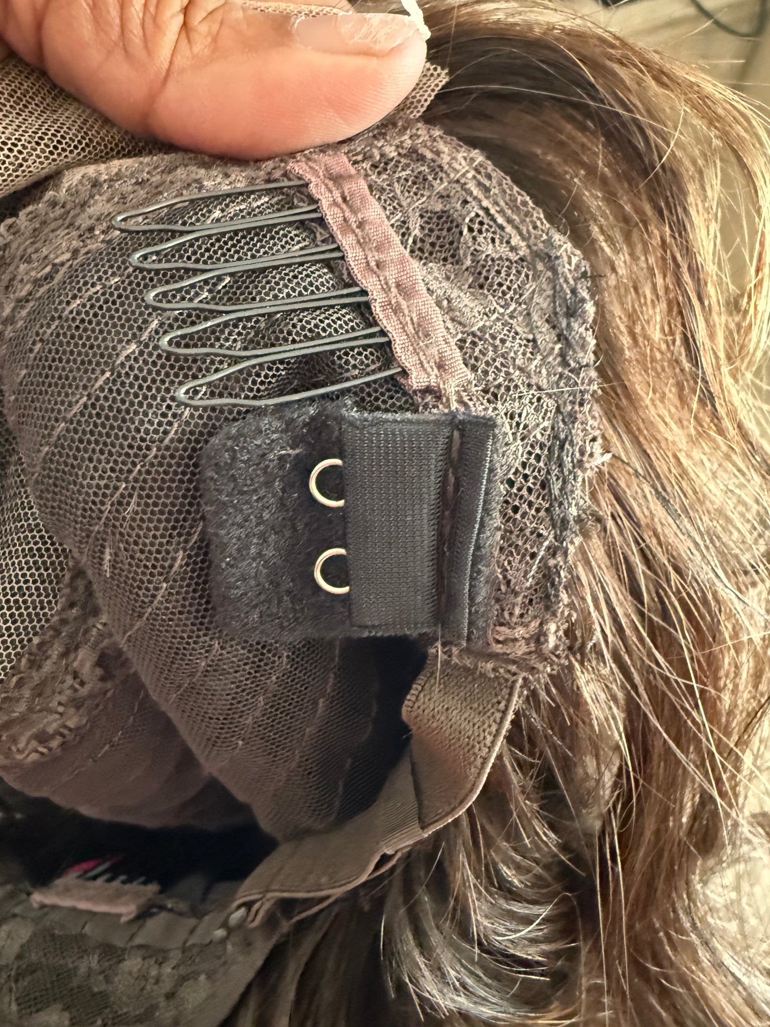 Please note: If your head measurements do not reflect an average contoured shape , ie: flat at the crown, double crown, flat at the occipital bone, etc. then you may experience issues..it is suggested that you use an adjustable strap and nape comb for a more comfortable fit.