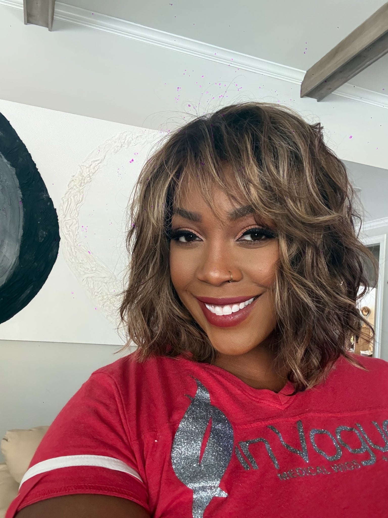 This is an original Bronde balayage size small, lots of bangs..4 inch to 6 inch and very short wispy layers cut by her stylist.