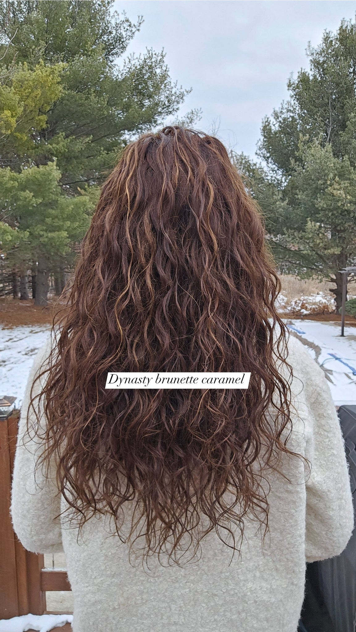 Style: comes freshly shampoo’d in its natural state exactly like the polka dot shirt photo and mannequin. Other photos of model in the gold shirt is an example of how the wig looks when styled.